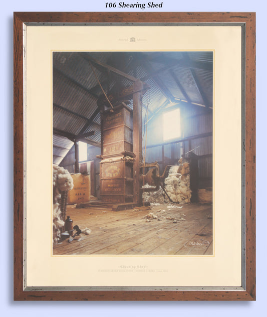 #106 - "The Shearing Shed" - 1905 Ferrier's Lever Woolpress - Humble & Sons (POSTER)